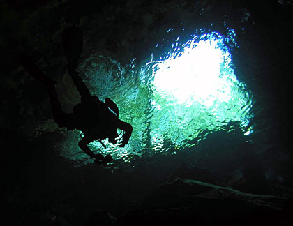 O mergulho em caverna é definido como qualquer mergulho conduzido dentro da zona de luz de uma caverna. A zona de luz de uma caverna é a área próxima da entrada, onde você pode ver a luz natural a todo momento.