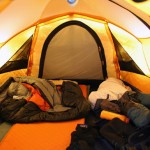Barrigueira – Este é o acessório mais importante da mochila, média ou grande. Fuja das mochilas com regulagem fixa, ou seja, aquelas que além da fivela principal da barrigueira tem uma outra que fixa a regulagem. No mínimo um dos lados deve ter regulagem livre: ajustável sem que seja preciso desconectar a fivela principal. Certifique-se também se a regulagem mínima da barrigueira vai se ajustar adequadamente quando você estiver magrinho ou caminhando sem camisa. Algumas pessoas chegam a emagrecer até cinco quilos numa caminhada de quinze dias em terreno difícil ou altitude. Não se esqueça de que a função principal da barrigueira é transferir o peso da mochila para os quadris. Barrigueiras fofinhas e com aparência confortável podem se tornar um martírio sob uma mochila carregada, e normalmente perdem muito em durabilidade.