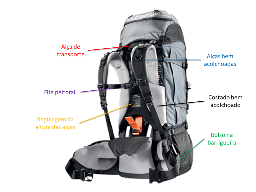 O bom equilíbrio da mochila nas costas é fundamental para o conforto e desempenho do usuário. A distribuição dos equipamentos na mochila muda de acordo com a atividade a ser praticada: