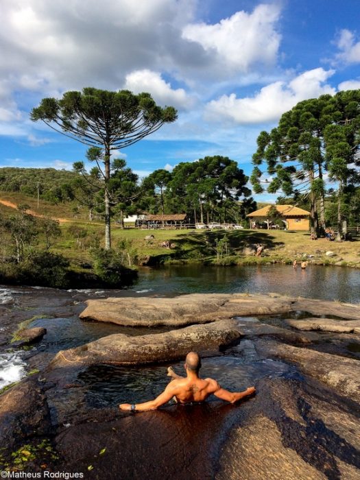 Ao longo desse caminho descobri outras pequenas piscinas onde dá pra relaxar como se estivesse em uma banheira de hidromassagem. Além de conseguir aproveitar ainda mais o visual, as águas, a vegetação formada por lindas Araucárias que complementam ainda mais a beleza do lugar.