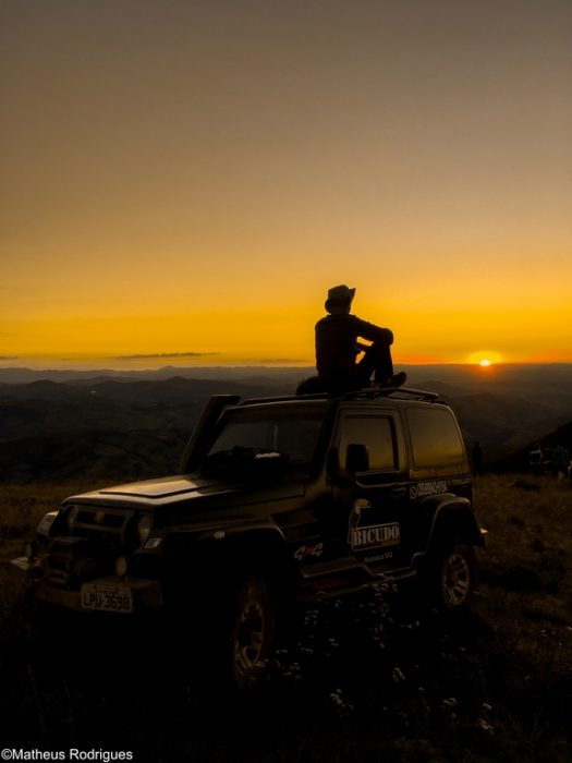 Para terminar o dia de passeios com o @bicudoadventure, fui de 4×4 rumo a um dos pores do sol mais incríveis da minha vida. Chegamos lá através de uma subida íngreme que só pode ser feita realmente por veículos offroad, pois o caminho é esburacado até chegar ao topo da montanha. O visual é de 360 graus e compensa o esforço.