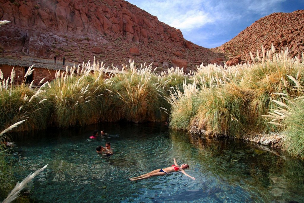 Um dos passeios mais bacanas nos arredores de São Pedro de Atacama é a Laguna Cejar. Vale a pena mergulhar na água clarinha, que não deixa ninguém afundar. O fenômeno acontece por causa da alta concentração de sal na água.