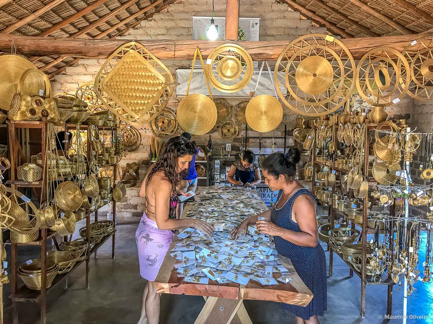 Saindo de lá, fomos até a Comunidade Mumbuca para a compra de artesanato de Capim Dourado. O local é o favorito de todos que visitam o Jalapão, pois tem a maior quantidade e variedade de peças de todos os artesãos da região. O preço também é excelente, mas leve dinheiro, pois eles não aceitam cartão de crédito (no momento).