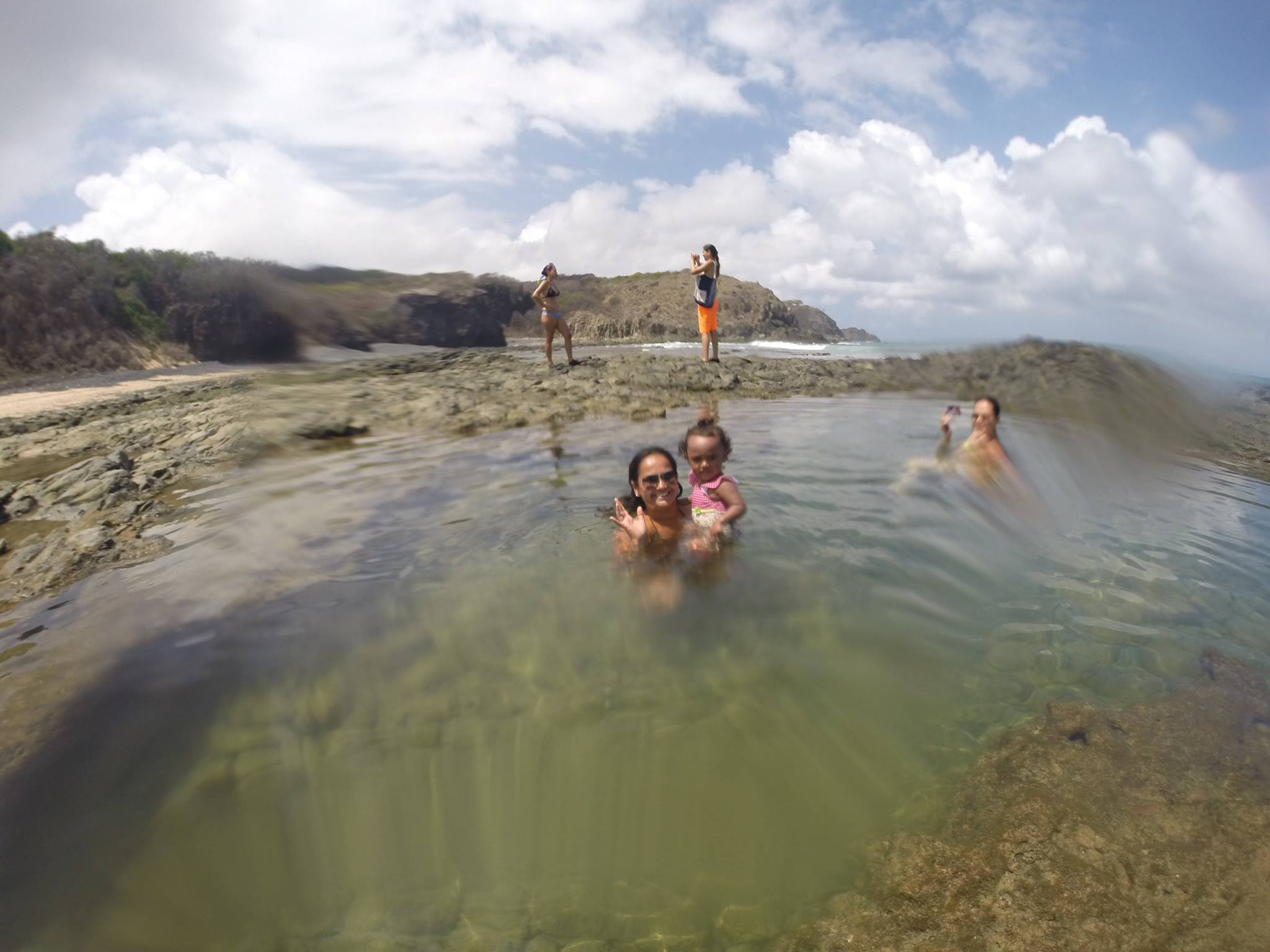 Vi um post algum tempo sobre ir pra Noronha com criança. Lá vi várias, não achei a cara dos pais de “que saco” e sempre as via sorrindo o curtindo o local. O que acontece, é que em dois sempre dá mais tranquilidade para sair com a criança (em qualquer local), você terá que cuidar mais do sol (blusa com protetor solar, chapéu, repassar protetor a cada hora, cuidar da hidratação e alimentação com mais amor) e não tentar correr.