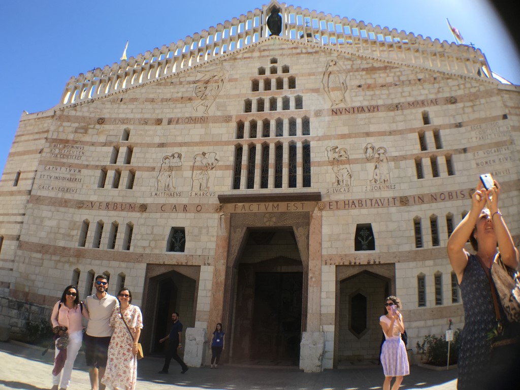 Chegando em Nazaré, fomos direto para a Basílica da Anunciação, onde embaixo há a gruta onde o Arcanjo Gabriel apareceu para Maria e anunciou que em seu ventre estava o Salvador, Jesus. A basílica internamente é decorada com vários painéis de como Nossa Senhora é representada em diversos países, sendo presentes de toda a arquidiocese do mundo para decorar este abençoado local. E, é claro, estava lá o painel de Nossa Senhora Aparecida. A sensação e emoção deste local é simplesmente indescritível. Não foi possível conter o choro. Uma energia nunca experimentada antes.