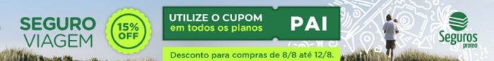 Tem cupom de desconto no seguro viagem no ar! Aproveite a Promoção Especial para o Dia dos Pais em todos os Seguro Viagem do site! Até o dia 12/08, todos os planos de seguros viagem estarão com 15% de desconto com o cupom PAI.