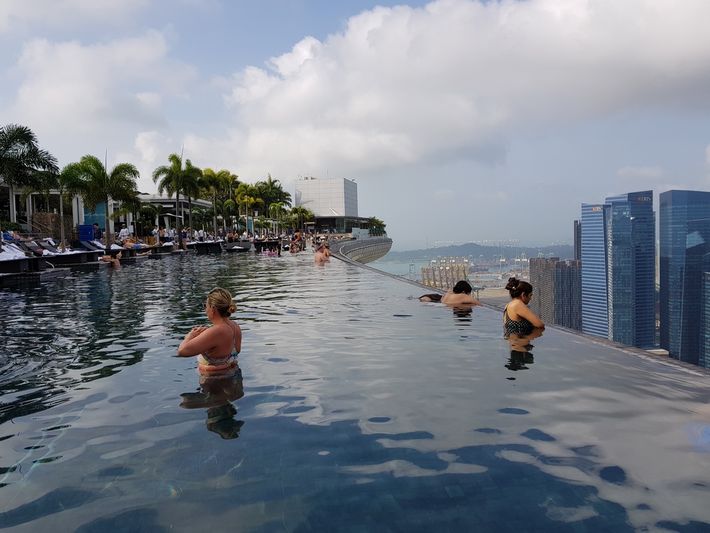Optamos por nos hospedar no Marina Bay Sands somente por uma diária e garantimos com 100% de certeza: se você puder se hospedar ao menos uma noite, se hospede! O lugar é mágico, um dos empreendimentos hoteleiros mais caros do mundo, muito confortável e de altíssima qualidade em todo o seu atendimento e estrutura. Mesmo que não tenha café da manhã incluso você pode fazer reservas em seus restaurantes e bares para qualquer tipo de refeição, inclusive na piscina.