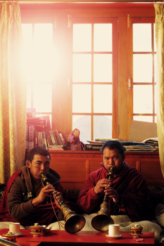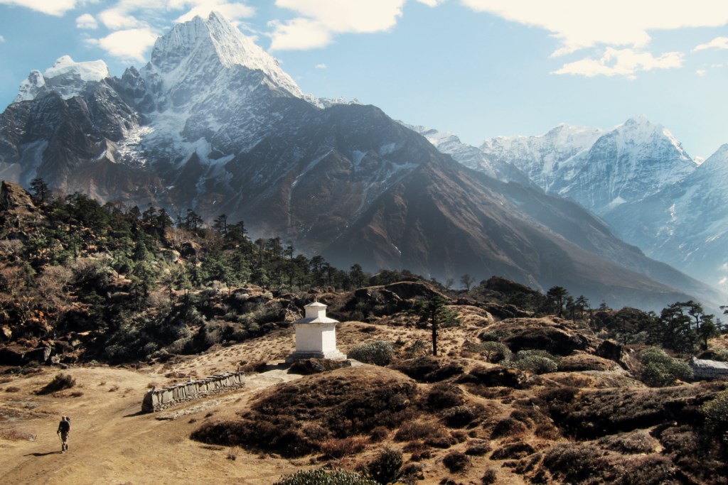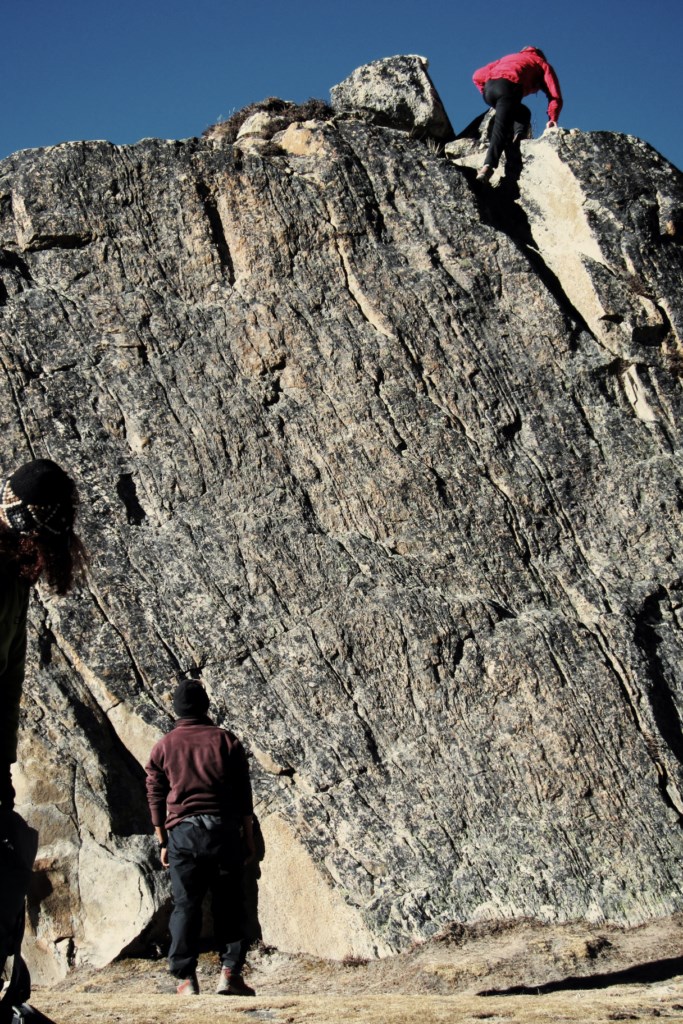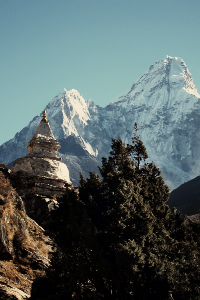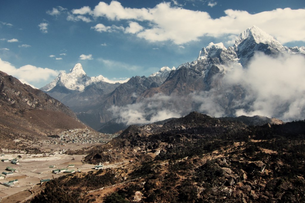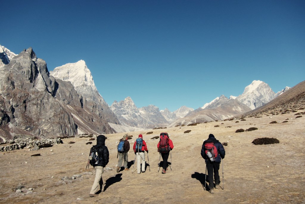 A região é ligeiramente povoada. Em construções muito simples vivem os sherpas, povo de origem tibetana, budista, superadaptado ao ar rarefeito do Himalaia. Enquanto nós penávamos, já no começo, com a falta de oxigênio e o esforço físico nas trilhas longas e íngremes, os sherpas carregavam nas costas pesos absurdos, cantando e assobiando durante a caminhada. Eram eles que levavam nossas malas e preparavam as refeições. Acostumados com os brasileiros que se aventuram no Nepal, eles falavam algumas palavras em português. “Bóra, bóra! Cabô moleza!”, era o que mais ouvíamos quando estávamos jogados no chão, exaustos, tentando recuperar o fôlego. Realmente não havia tempo para descansar. Em geral, começávamos a caminhar no nascer do sol e só parávamos quando ele estava atrás da cordilheira.