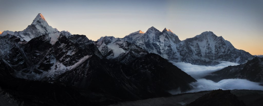 Depois de dez dias de subida, estávamos a poucos metros do cume do Kala Patar. Traçamos a estratégia de ataque ao pico. Resolvemos partir no início da tarde, para chegar lá no pôr-do-sol. Assim, a chance de conseguir a vista sem nuvens era maior. A equipe se dividiu.