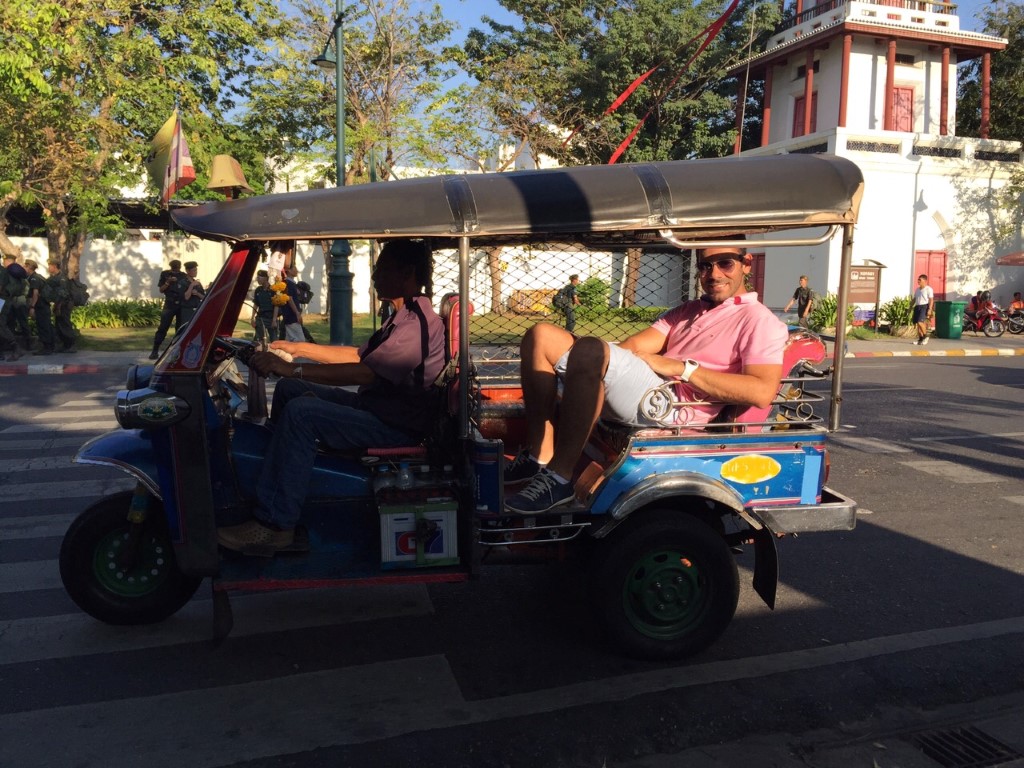 TRANSPORTE: No aeroporto, há diversos serviços de transporte: táxi, ônibus, limusines, carros privados e trem. Optamos seguramente pelo táxi, com carros de diversas cores (o nosso era rosa), cobrado através de taxímetro e conduzido pela mão-inglesa, deixando-nos tranquilamente no hotel. Dentro da cidade, existem também os famosos tuk-tuk tailandês: coisa para turista. Vale a pena para fazer um passeio curto experimental, com valor pré-negociado (eles exageram no valor inicial). Prefira táxi com taxímetro, é seguro e confiável.
