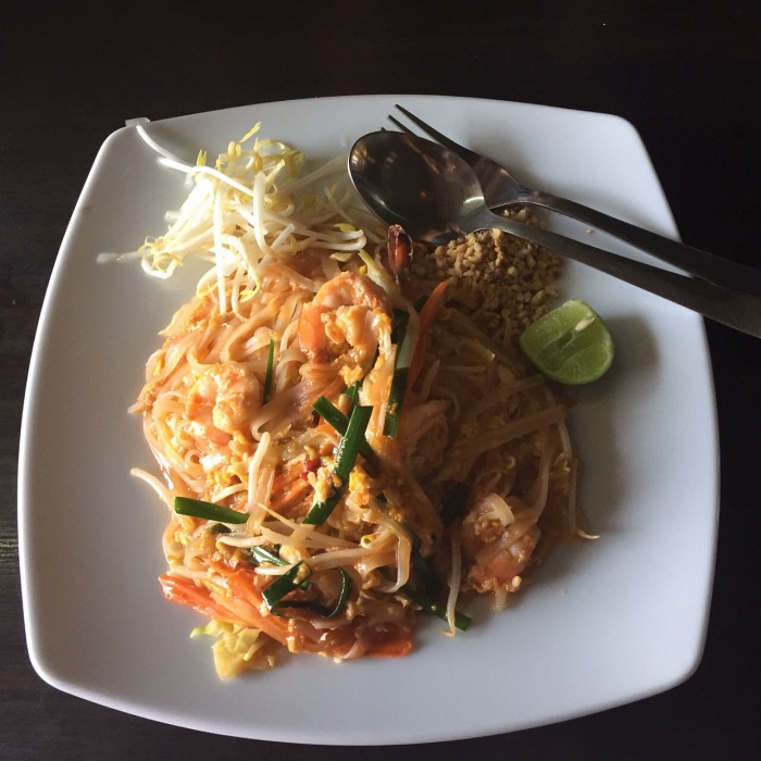 Outra iguaria local é o “Pad Thai”, que são noodles de arroz, servidos com carne de sua preferência ou com vegetais (eu pedi com camarão e broto de feijão). Indico muito, principalmente acompanhado de um bom shake de côco ou uma cerveja Tiger (em Phuket, vá no restaurante Pirate’s House para almoço). De sobremesa, sugiro experimentar o “Mango Sticky Rice”, bem típico. É uma espécie de arroz doce de côco com manga. É divino!