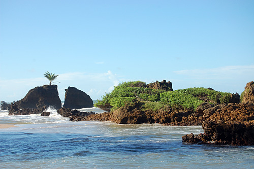 Sua topografia é intimista, tal qual seu significado; como concha, abraça, guarda, protege carinhosamente os naturistas através de suas falésias multicoloridas e pedras negras imponentes, não dando a cesso a intrusos e a visitantes indesejáveis.