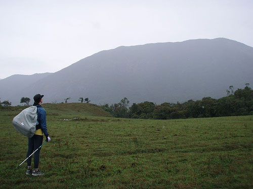 Após muita chuva e um pouco de correria no meio de um pasto… e na verdade, não sei do que estávamos correndo, pois não tinha pra onde ir! e de pisadas em cheio em montes de totôs de vaca, a chuva foi acalmando, mas os raios e trovoadas não. Subida da misericórdia: ei-la! Começamos a subir um pasto, e um morro, e uma montanha, e subir, subir, subir.