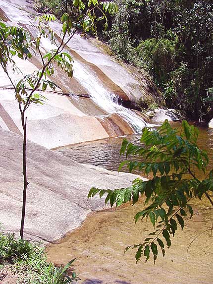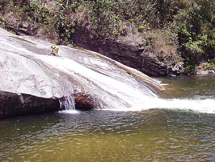 A primeira a ser visitada foi a Cachoeira do Escorrega, umas das mais conhecidas da região. Quem a visita se transforma numa verdadeira criança escorregando em suas águas. Trata-se de um tobogã na própria pedra do rio com aproximadamente 20 metros de altura e que termina numa enorme piscina natural. Para conhece-la seguimos ate o final da estrada Maringá-Maromba – localiza-se a 5,3 km do centro de Maringá. Vale lembrar que não se deve abusar da sorte nem da confiança ao escorregar pelas pedras.