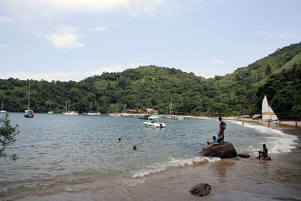 Depois de mais ou menos 1 hora e meia de caminhada chego a uma praia, chamada Flamengo, notei alguns barcos na região, parei para um descanso, mas ainda não é o nosso destino.