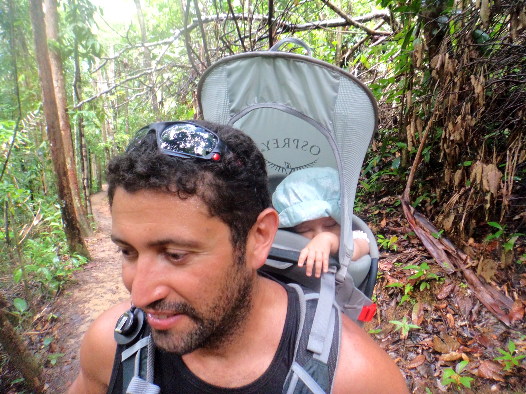 Como falaram que a trilha era pesada, eu e meu esposo (Ary) combinamos logo as regras do “jogo”: ele carregaria ela na ida e eu carregaria na volta! rsrs.