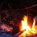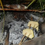 Como já sabíamos que não haveria qualquer infraestrutura para camping, decidimos improvisar nossa base de camping com o que a natureza nos oferece e recursos que encontramos no caminho. Por exemplo, como o tempo estava imprevisível podendo chover, fizemos um abrigo para o fogo com palha verde de palmeira. Como o local é completamente arenoso, seria indispensável fazer uma mesinha para não termos problemas na hora da refeição, utilizamos cordas que são jogadas dos navios no mar e são trazidas pro litoral pela maré e gravetos, a grelha foi feita com gravetos e arame.