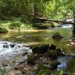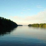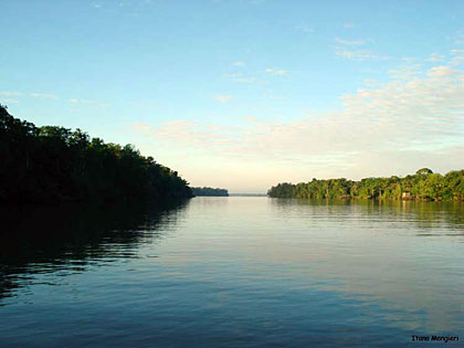 De repente, avistamos a praia. Um visual digno de registro em nossas máquinas fotográficas. Continuamos seguindo pela areia da praia sob a chuva até o restaurante onde almoçaríamos. Porém, antes do almoço, nada melhor e confortante que um banho na praia de água doce … e queeeente ! Ali ficamos “de molho” por quase uma hora relaxando nessa “hidro-natural”!