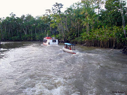 O percurso durou cerca de 45 minutos e foi uma viagem agradável, onde a beleza natural, o trânsito matinal dos barcos e os moradores ribeirinhos nos acompanharam o tempo todo. Enquanto o grupo ia se juntando, aproveitamos as barraquinhas do mercado para tomar o café da manhã e comer tapioquinhas.