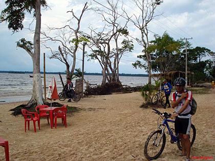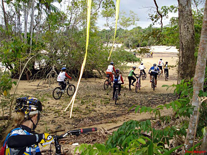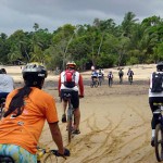 Um pouco antes de chegarmos à Praia de Sirituba, a chuva e a adrenalina chegaram juntas. A experiência de pedalar por single-tracks debaixo de chuva e enlameados com as rodas deslizando sobre as raízes da mata, foi emocionante.