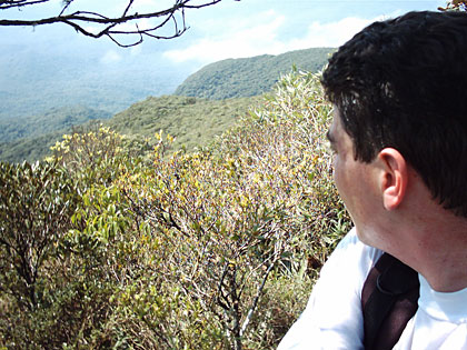 Percorri toda a trilha e já aguardava ansioso o primeiro “clarão” onde eu poderia avistar um pouco da serra do mar. Este demora a surgir e sigo ali, caminhando sozinho no meio da mata, subindo em meio a bambus e raízes até que surge a primeira oportunidade para apreciar a natureza que me cercava.