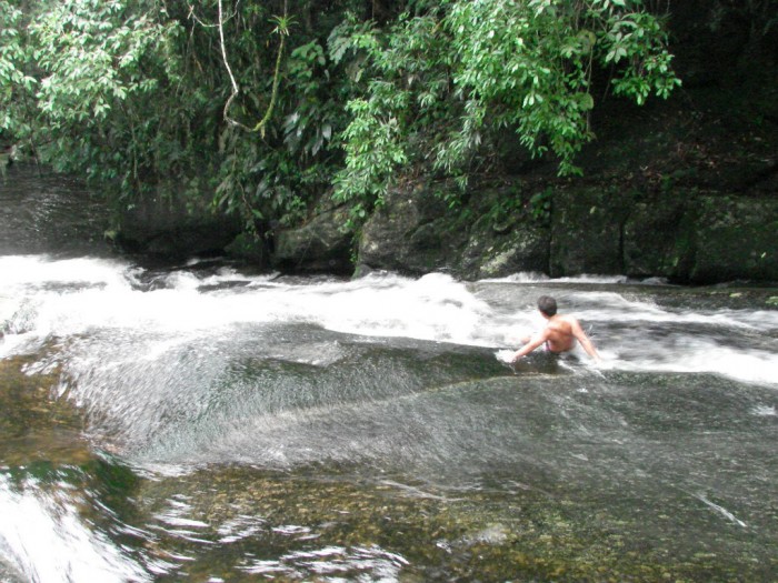 Trilha da Cachoeira da Toca – A cachoeira da Toca é a mais conhecida de Ilhabela. Tem uma ducha forte, com cerca de 3 m de altura, e um grande escorregador com cerca de 50 m de extensão. A Toca, que dá nome ao local, é uma grande gruta ao lado da qual a cachoeira cai. O rio passa por dentro da gruta, desembocando num pequeno escorregador. A entrada é paga e custa 4 reais. A entrada para a cachoeira da Toca fica logo no início da estrada de Castelhanos. Há varias placas indicando o caminho.