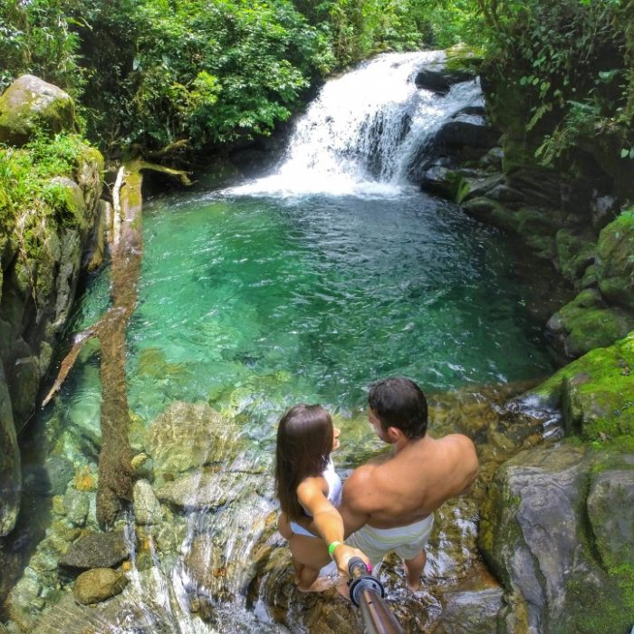 O Poço das Esmeraldas fica dentro do camping e pode ser acessado por uma trilha leve de 15 minutos, na ida é só descida íngreme, portanto muito cuidado nas pedras escorregadias e tenha em mente que a volta é só subida.