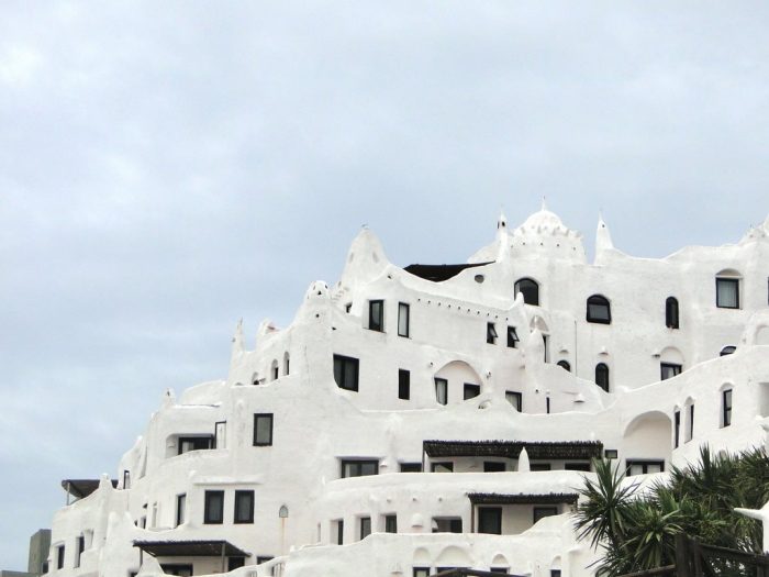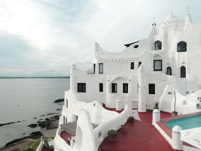 De todas as atrações da cidade, a melhor, na minha opinião, fica na localidade vizinha de Punta Ballena e tem o nome de Casa Pueblo. A casa é a obra da vida do artista uruguaio Carlos Páez Villaró e fica num lugar mais que privilegiado, no alto de colina à beira-mar. A construção inusitada, toda branca, contrasta com o azul do céu e do mar e o cenário ali é realmente encantador.