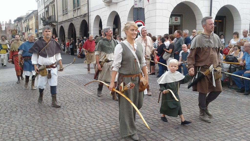 A Via Postumia passa por aldeias que nos remetem à Idade Média, cidades muradas, como Palmanova, Castelfranco Veneto, Cittadella… nesta última, tivemos a sorte de passar em um dia em que estava ocorrendo uma festa medieval. Foi fantástico. Interagimos com o povo local, vestidos à caráter, almoçamos no meio deles.