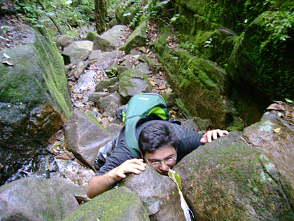 Energias renovadas é chegada a hora de voltar. A trilha de volta foi muito tranqüila, sem nenhum imprevisto. Quando estávamos próximos a estação, fomos surpreendidos por uma garoa gostosa, que não tirou nossa animação e mais uma vez terminamos o dia nas águas cristalinas do “Cemitério dos Grampos”.