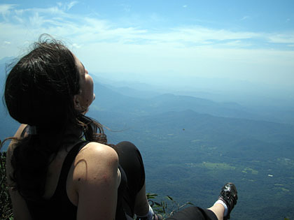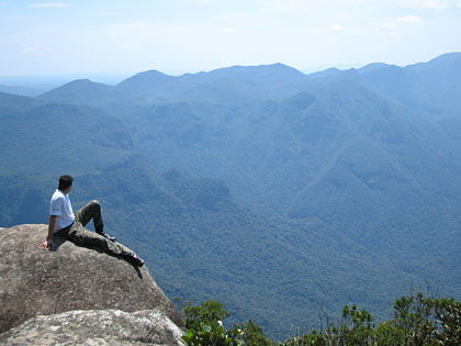 Depois de aproximadamente 3 horas de caminhada chegamos ao ponto mais alto da montanha. O prazer que aquela vista nos proporcionou, com certeza compensou qualquer esforço e gota de suor derramada. Ali sentados conseguíamos ver, ao leste o litoral do Paraná e ao norte boa parte da serra do mar e suas formações, bem como toda a formação de montanhas que compõem o Conjunto Marumbi.