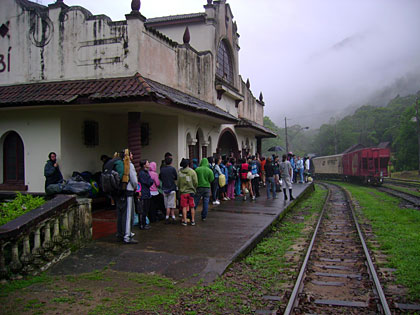 Já na estação prontos pra partir, a montanha nos da um ultimo presente, aparecendo rapidamente em meio a névoa que a cobria. Todos ali paralisados, contemplando os últimos momentos naquele lugar mágico. Um cenário que merecia ser registrado.