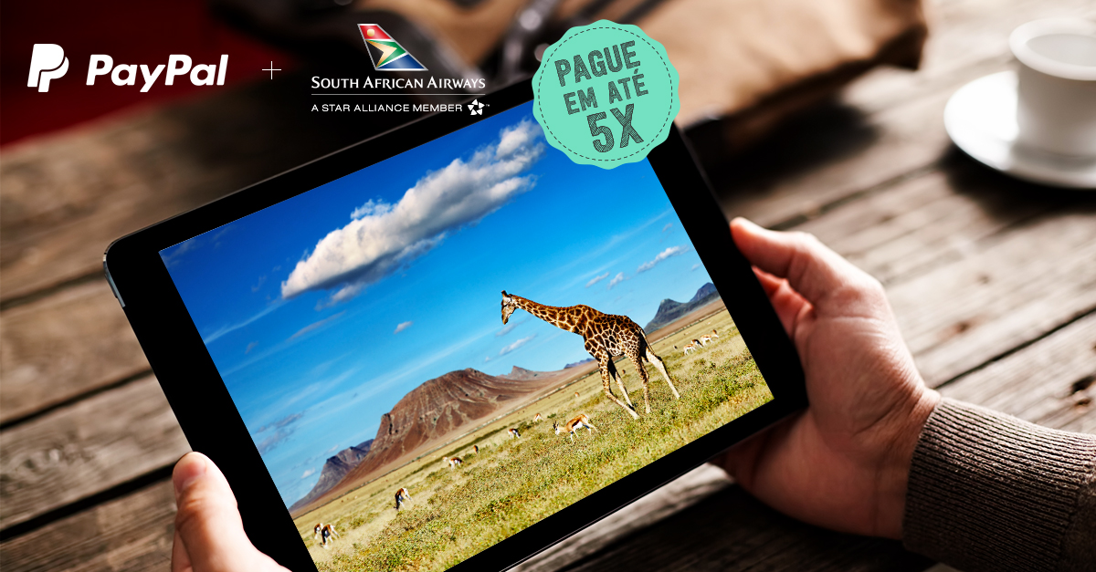 Um dos meios de pagamento mais seguros e usados da internet acaba de anunciar uma novidade muito legal para os viajantes brasileiros. Agora é possível comprar passagens na South African Airways, uma das nove companhias aéreas mundiais que opera voos para todos os continentes, com toda a praticidade do PayPal e ainda parcelar em até 5x sem juros.
